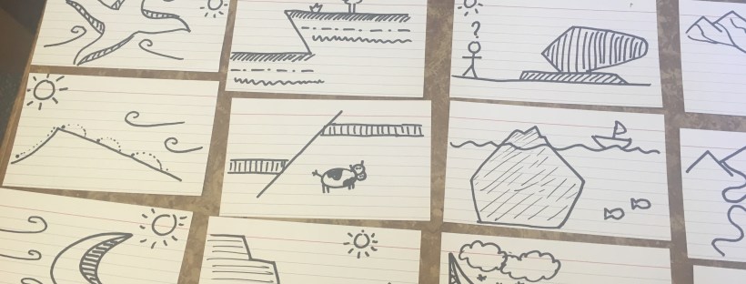 • Back-to-Back Science Communication Drawing Exercise (see the featured/header image on this post) – this exercise has students sit back to back so they cannot see one another. Each student is given two notecards: one with a simple drawing of a geomorphic feature or process, and one that is blank. The students must describe to their partner what feature or process is on their card and try to get their partner to recreate it on their blank card. This exercise helped students be articulate in their language and practice making observations.